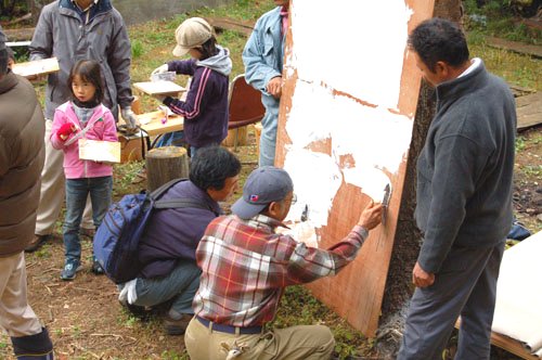 塗り体験では両方の材料共に、左官の素人が塗ってみたが、漆喰塗りは本職の職人でないと上手に塗れない材料であり、一方の珪藻土「はいからさん」は素人のDIYでも塗ることが可能な材料のようであった。